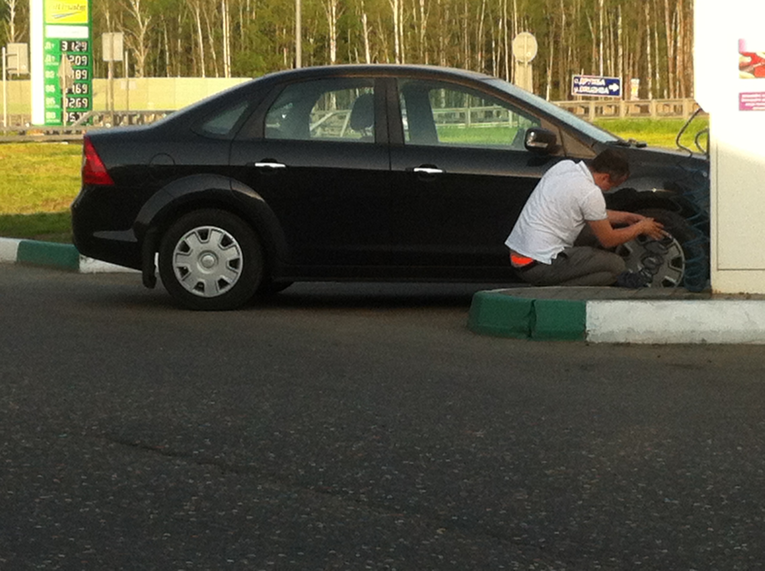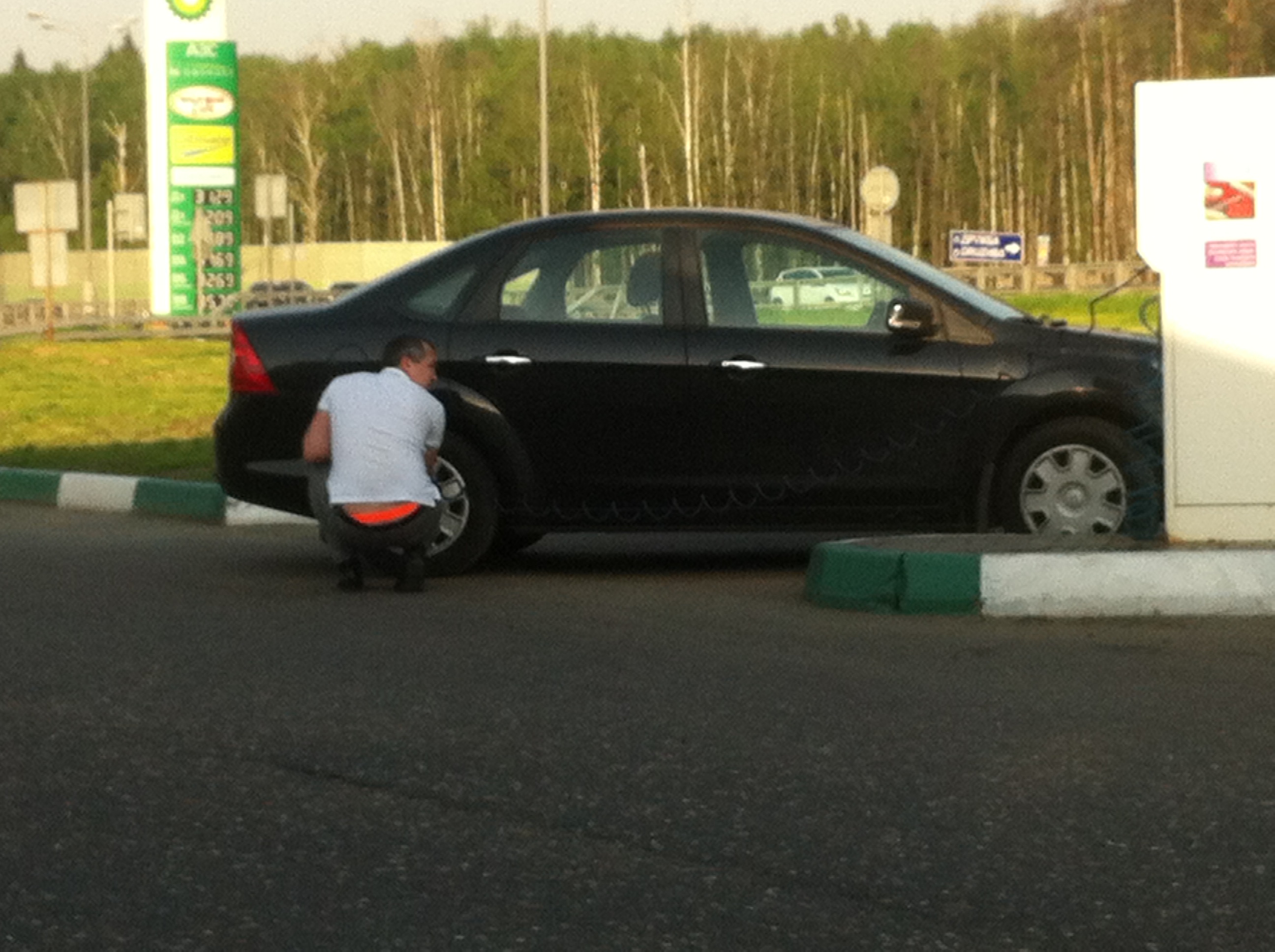 вот тоже картинка. Стоит мужик, нормально так одетый, пока не присел колесо подкачать))))))))))